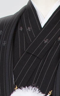 お洒落な紋様が欧州風で和洋の融合したレトロっぽい黒紋服です。