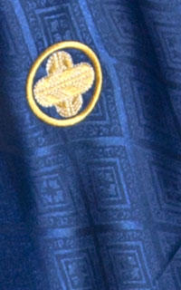 スタンダードな花菱柄の青。お客様の要望の多いスタンダード紋付袴スタイルです。