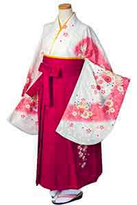 地模様がキレイで少し大人っぽい白の着物です。正統派の紺の袴で。