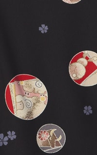 かわいい干支の柄が着物を彩ります。黒地の着物だけどとってもカワイイ袴セットです。
