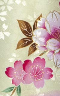 上質な生地の淡い黄色の着物です。地模様の桜花びらが光にキラキラ反射して、とてもかわいい。