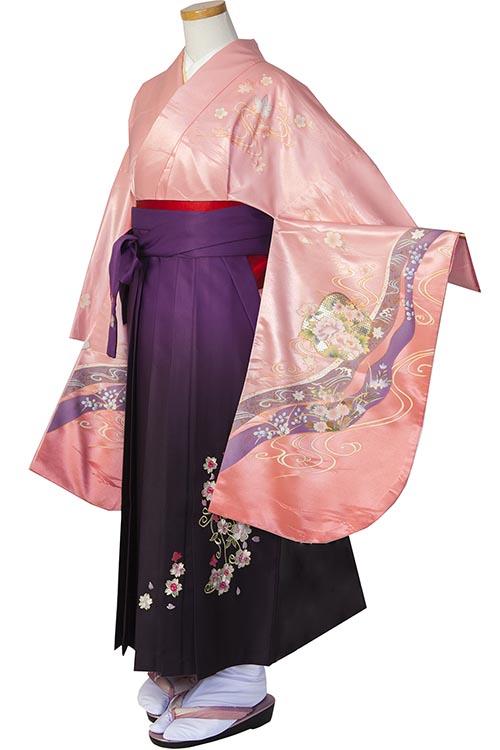 光沢のある上品な生地の着物です。柄ゆきもとても落ち着いているので、どの世代からも好感のもてる袴スタイルです。