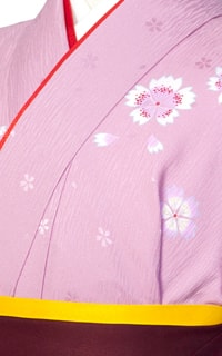 やさしいピンクの色合いが清潔感と好感を周りの人に与える着物です。さりげなくカワイイ柄もとても良いです。