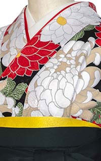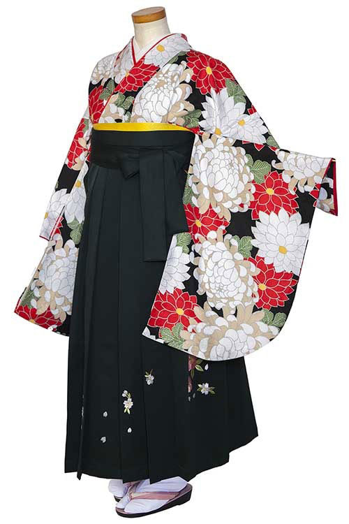 古い菊の伝統柄だけど、大きな柄がとても新しい印象の袴姿です。