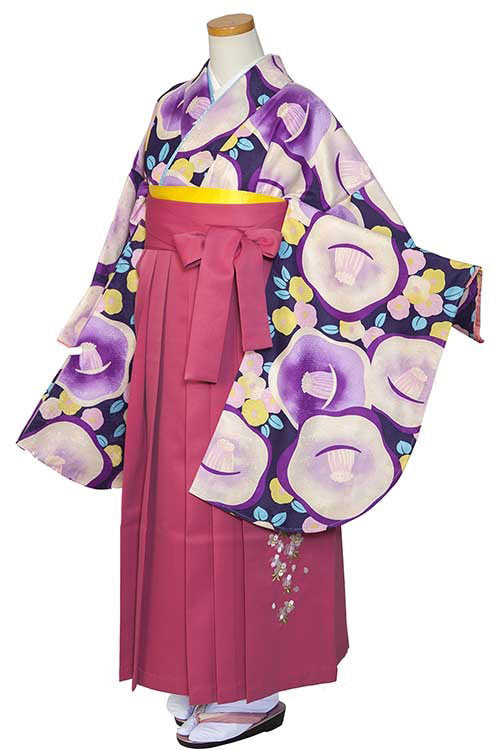 大きな柄でしっかり目立つ着物です。袴姿がたくさんいる学校でも埋没しない袴姿を実現。