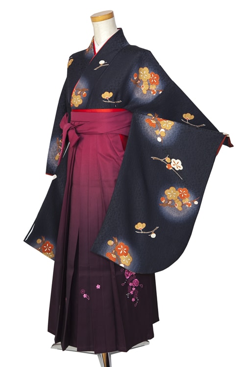 濃紺の着物とえんじ紺の袴との組み合わせがGood!遠めに見ると着物の柄が蛍のように浮き上がりますョ。