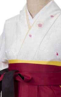 小学生らしく元気の良い健康的イメージな白の着物。ワインレッドの袴は子供サイズ限定