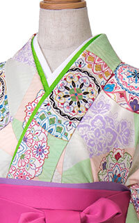 着物には珍しい柄。いつもと違う雰囲気を。新しい自分を見つけよう!色違いのピンクもありますよ。